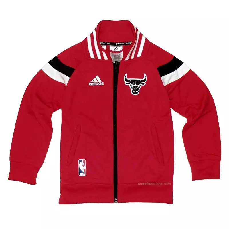 Adidas full zip jacket, collar cuffs hem elastic waist, two side pockets, and performace Bulls adidas logo on chest, NBA logo on the waist.