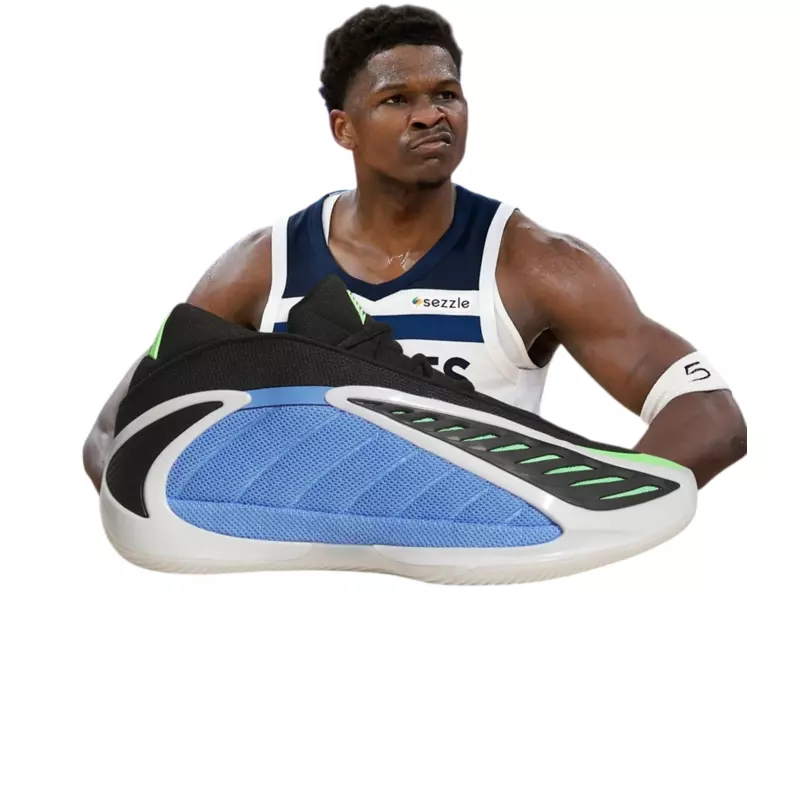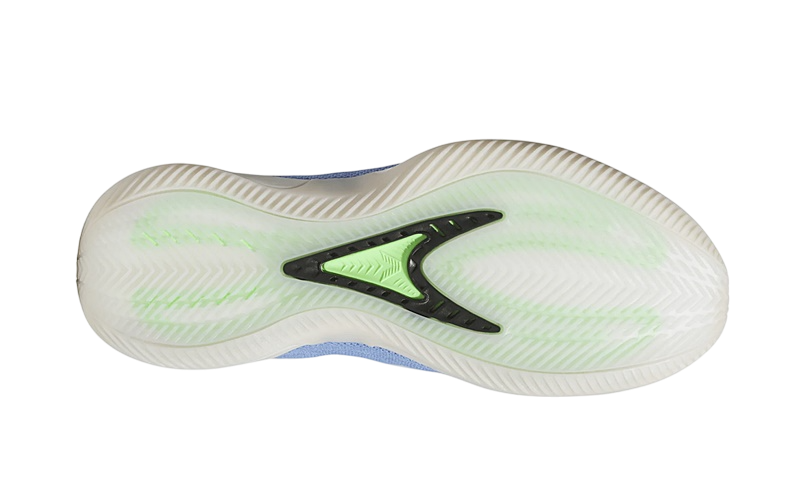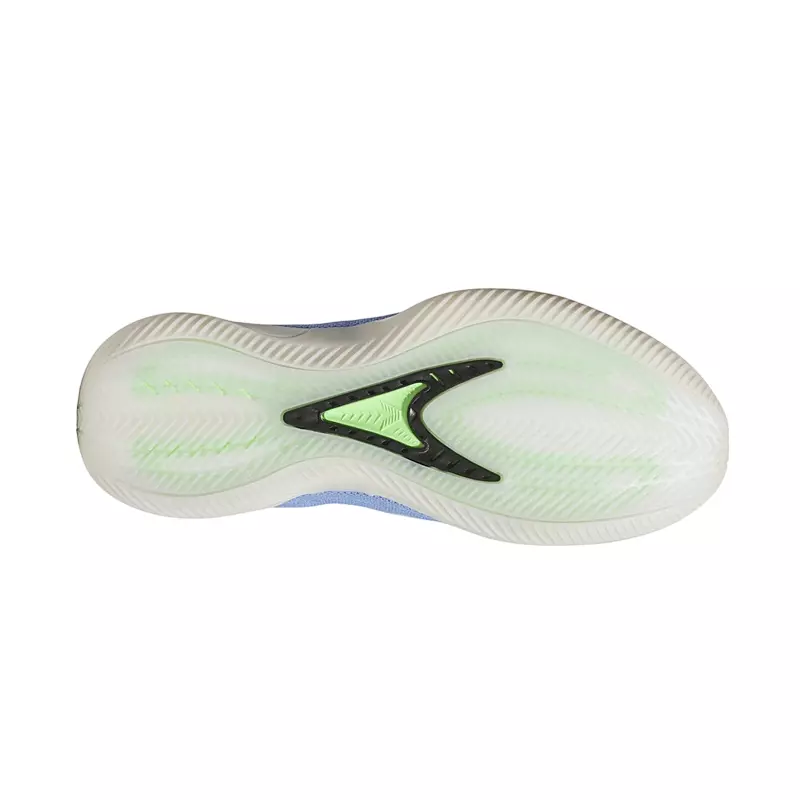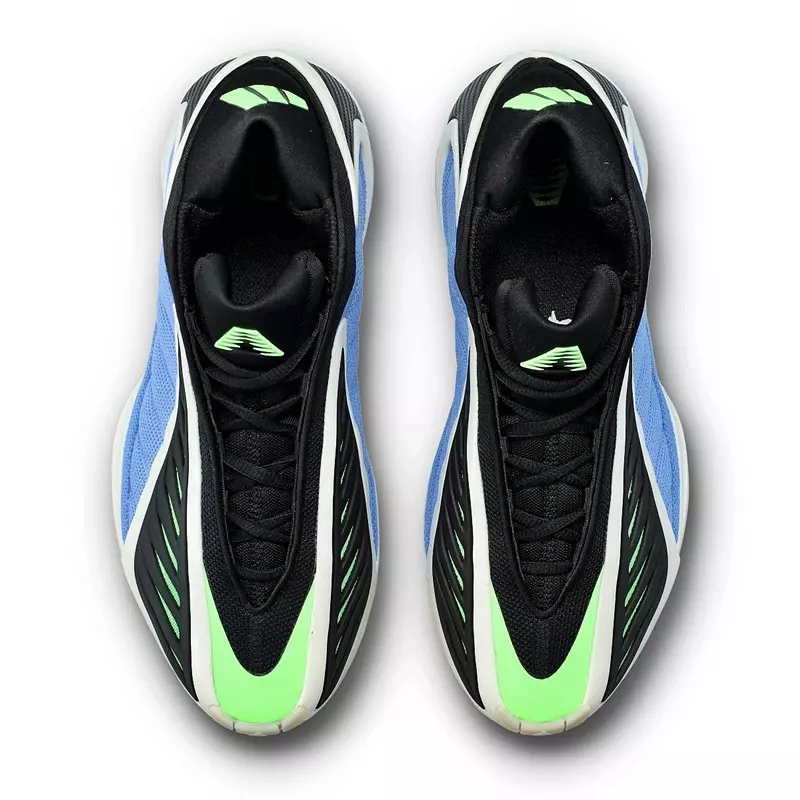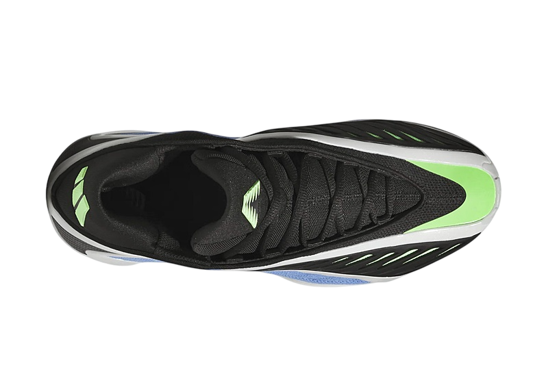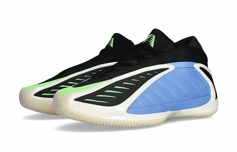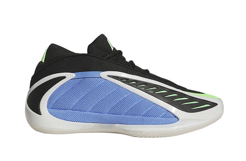 The design of the Adidas Anthony Edwards 2 is as distinctive as its functionality. The Fusion Blue, Zero Metallic, and Lime Blast color combinations make this pair stand out. The blue mesh on the panels and the green mesh under the black TPU layer not only add a striking visual touch but also improve foot ventilation thanks to the opening in the upper.
