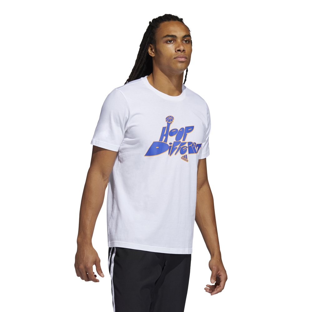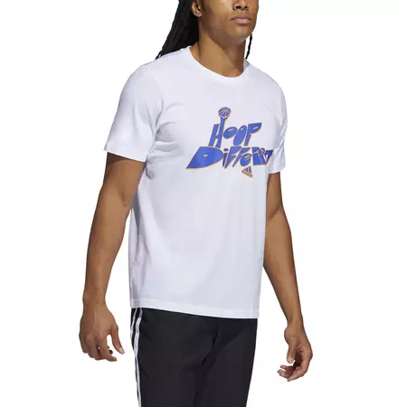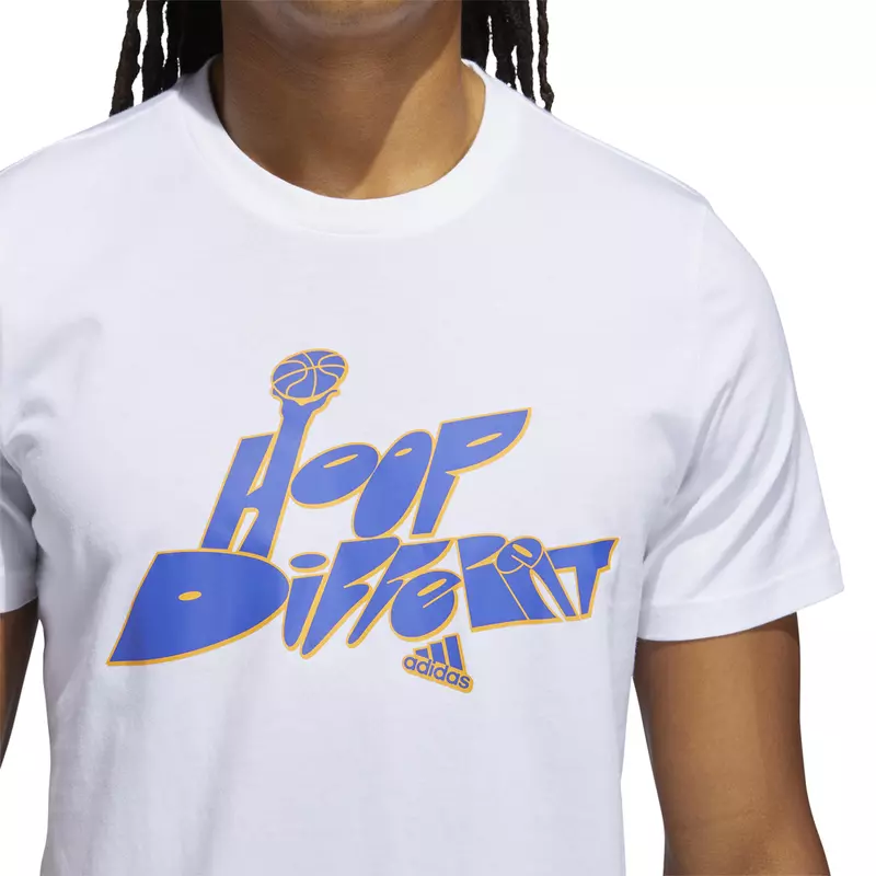 "Celebrate your unique game in this adidas basketball t-shirt. It's made in all cotton for a soft, comfortable feel. An eye-catching ""Hoop Different"" graphic gets your message out.