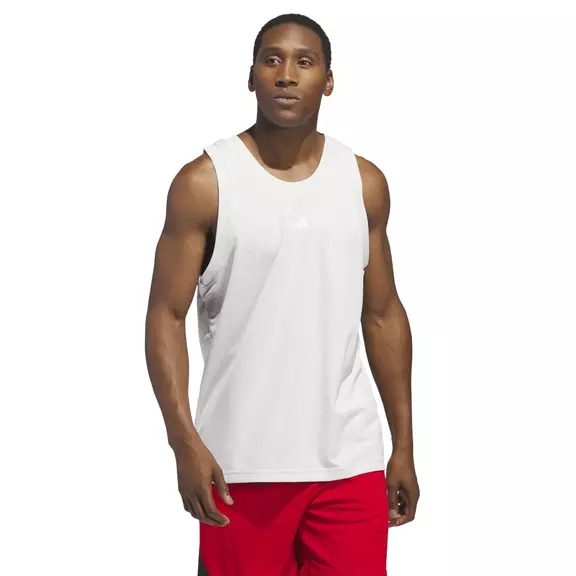 Play all day long in this adidas basketball tank top. It's made from soft, airy mesh to keep you comfortable while you work on your game. The loose fit allows you to move freely on and off the hardwood. A minimum of 70% of this product is a mix of recycled and renewable materials.