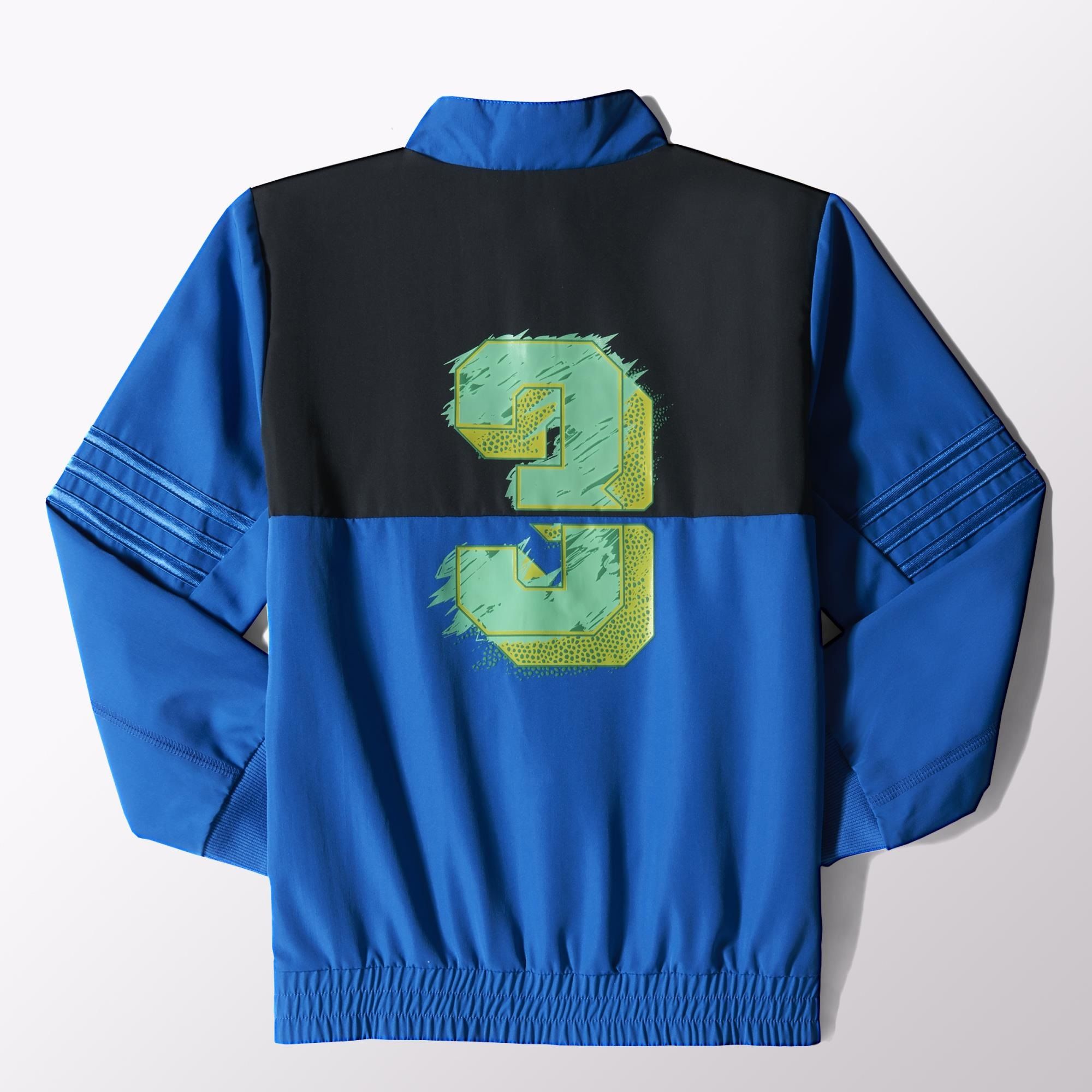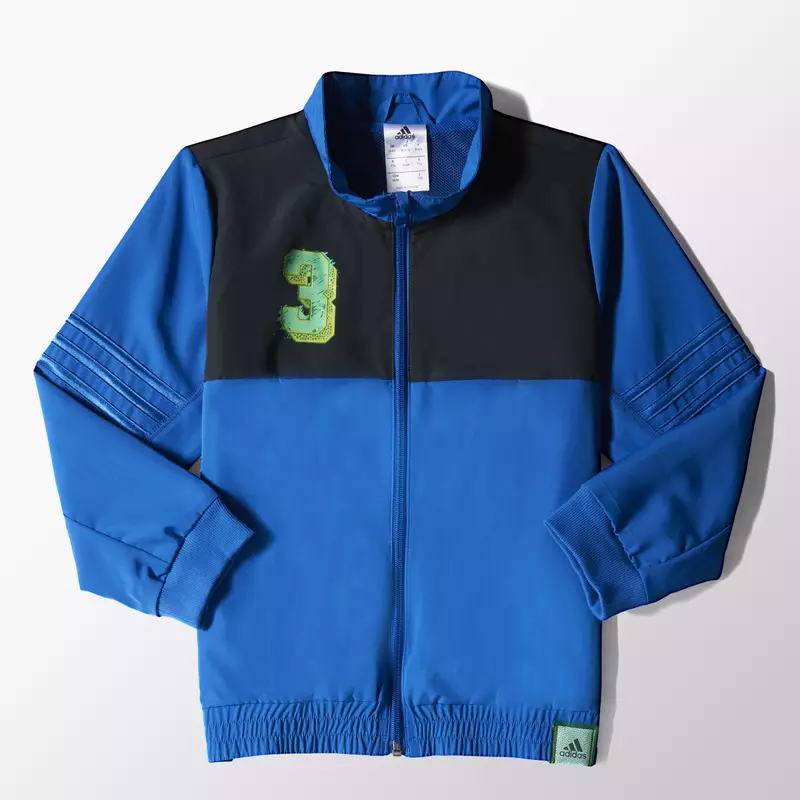 - Chaqueta: bolsillos ocultos en las costuras laterales; cierre de cremallera; cuello alzado; 3 bandas reflectantes en las mangas; logotipo de adidas cosido en el dobladillo; logotipo "03" estampado en la parte frontal y en la espalda