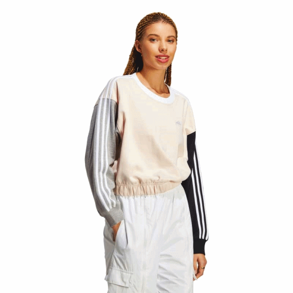 A modern take on a classic Adidas sweatshirt. This relaxed top is cropped to highlight your waist, while cotton French Terry fabric lets you move comfortably in the gym and on the go.