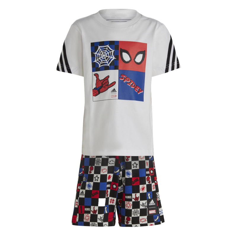 This Marvel Spider-Man mini-fan Adidas outfit was designed to get your little one dressed in seconds. Consisting of a top and shorts that he can wear separately or paired with his Spider-Man-inspired Adidas shoes, he'll be ready for action. The round neck T-shirt has been made of breathable cotton and the shorts, in a plush fabric that is very soft to the touch. Whether it's saving the world or spending the day on the sofa, your comfort is assured. Our cotton products have been made sustainably.