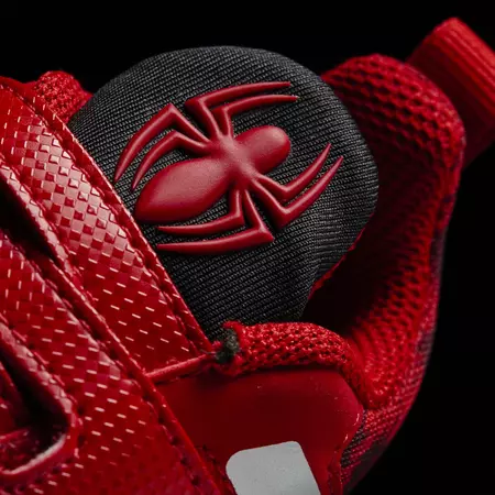 - PU-cast forefoot web inspired by Spider-Man suit; Spider logo on tongue