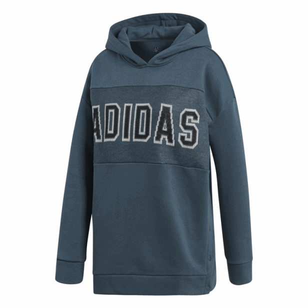 This women's hooded sweatshirt has been designed with the style of basketball players warming up in the '90s. It retains classic details like snap-on side closures, adidas contrast lettering on the front and a small embroidered clover. in the back. It has been made in a soft and warm plush fabric.