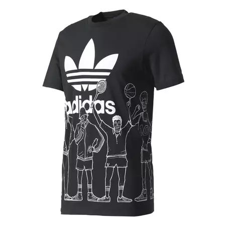 Presume a hooligan style with this mens shirt that gives a new twist to the classic adidas clover. Features a fun sports-inspired print on the front with a surprise character on the back.