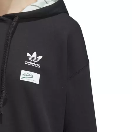 This sweatshirt features a hood lined with a pattern of fine stripes inspired by the world of baseball. It sports a small shamrock and a label with cursive letters that evoke vintage baseball shirts. It has been made in thick soft touch interlock fabric.