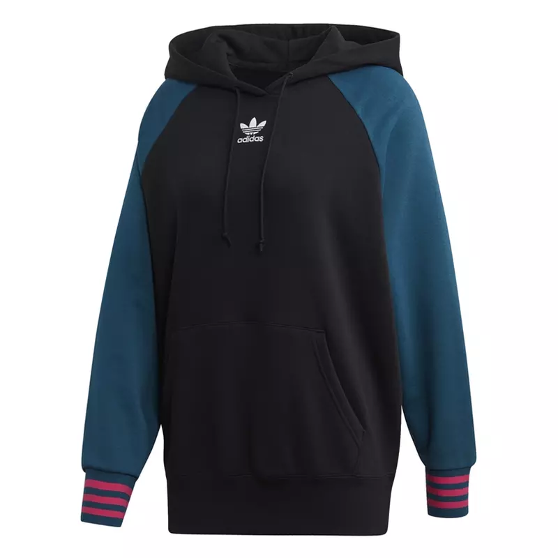 Contrasting color blocks give a feminine touch to this classic sports design. This plush sweatshirt features a loose and casual cut that allows you to move freely. The 3 contrasting bands on the cuffs guarantee the authenticity of our legacy.