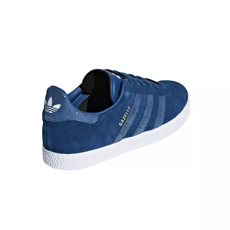 La Gazelle was born in the 60s to offer greater traction in the turns and fast lateral movements, so it soon became the favorite of footballers and handball players. This shoe reissues the 1991 version with a synthetic suede upper that adapts to a new generation. This special edition launched exclusively for these parties shines bright in the 3 bands and the buttress.