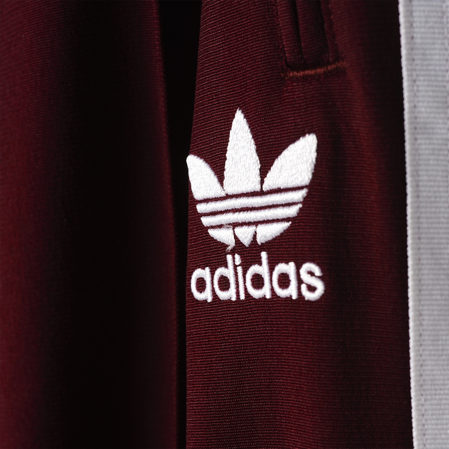 - Contrast 3-Stripes down legs; Embroidered Trefoil on left leg