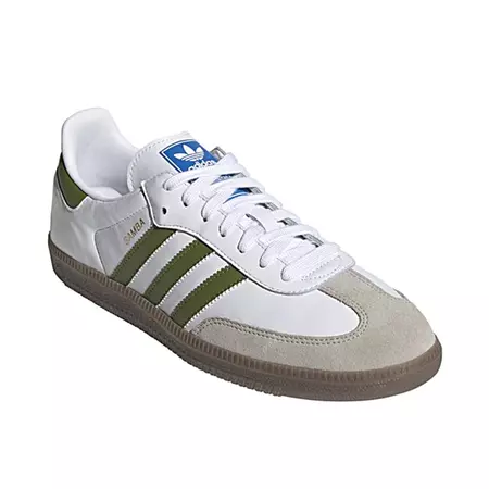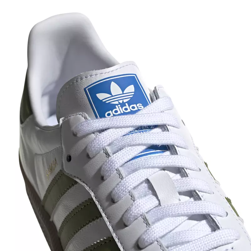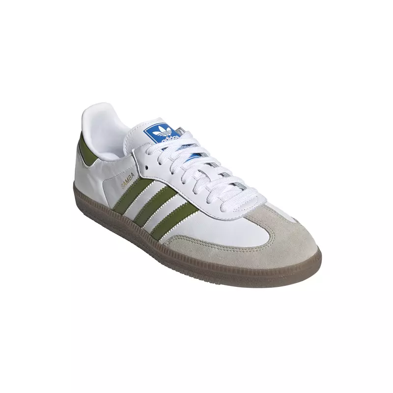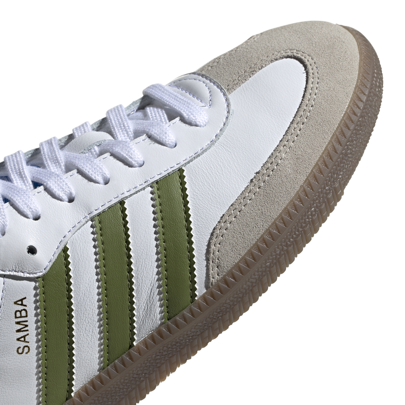 Samba debuted on the soccer fields and then triumphed in the streets. This shoe maintains the essence of its legacy with a leather upper and two-tone suede upper. Presents the logo of the clover stamped on the tongue and the inscription "Samba" in golden letters with metallic finish.