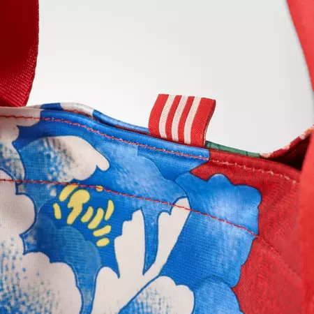 This women's handbag, designed in collaboration with Brazilian fashion company The FARM Company, features a charming Asian-inspired floral print. Exotic flowers stand out between red and blue tones to create a lush color palette.