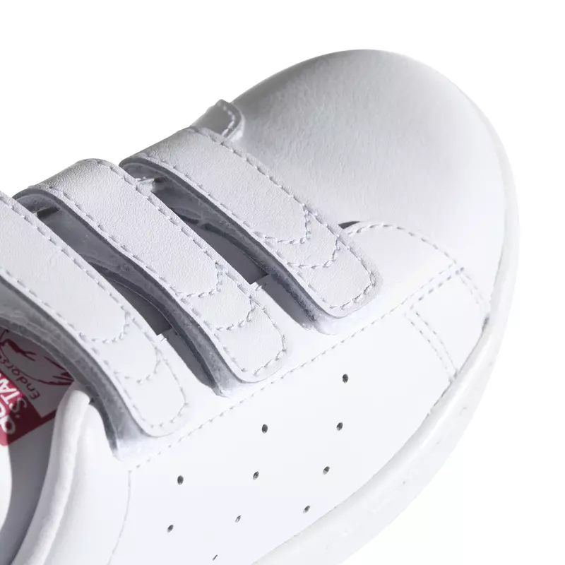 Stan Smith was named after one of the greats of tennis and became a true urban icon. This shoe is a miniature version of that adidas legend. It has a leather upper and a soft lining that provides great comfort. Includes a velcro strap closure for easy on and off.