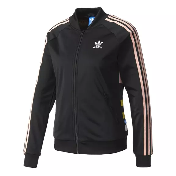 This women's track jacket mixes Parisian fashion with adidas Originals style. The full-zip design features raglan sleeves and colourful stripes. It's finished with the signature details of the Superstar track suit, including tricot fabric and a ribbed collar.