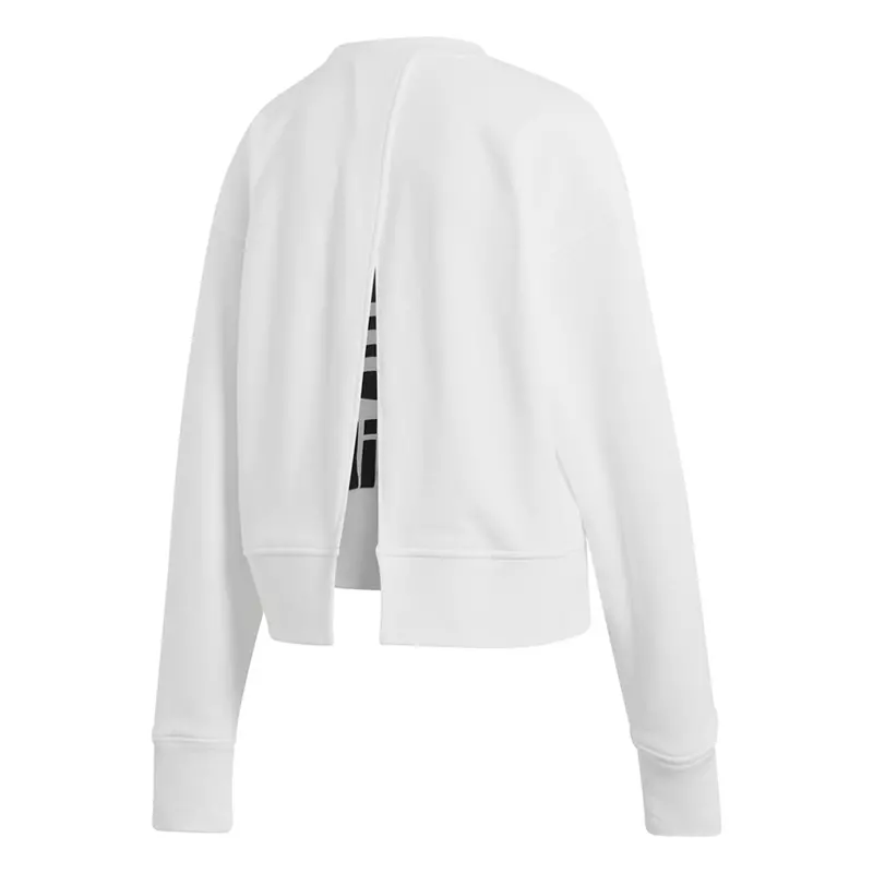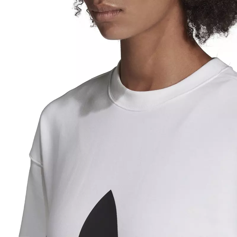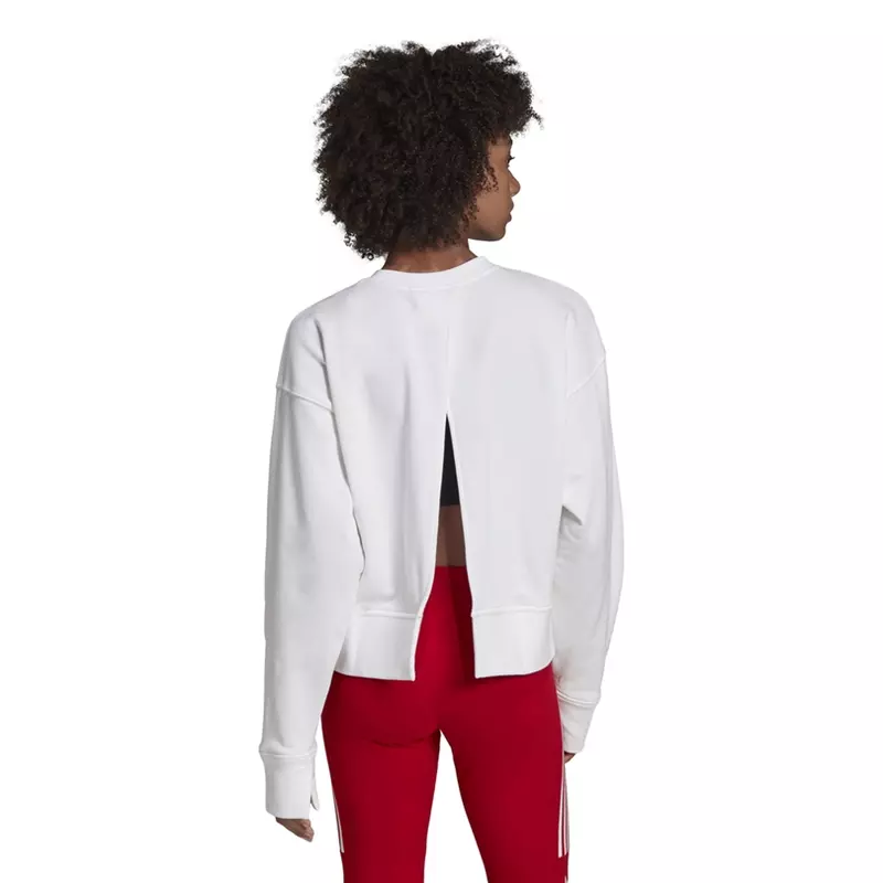 This sweatshirt reinvents the legendary trefoil style with a current urban look. It features a design with long sleeves, concealed zip cuffs and a central opening in the back. It has been made in a plush fabric very comfortable and soft to the touch.