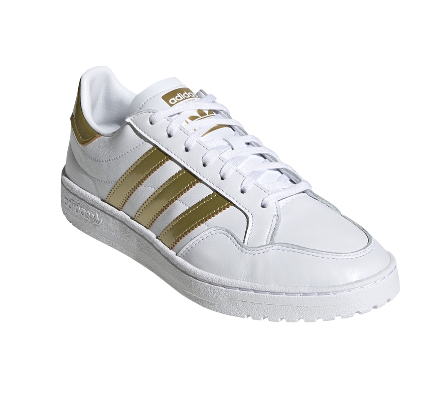 Classical and classy. The Adidas Team Court shoe is inspired by mythical models from our archives to create a timeless design. Its versatile silhouette includes a stitched rubber sole that provides comfort in your day to day. Metallic details give it an extra touch of style.