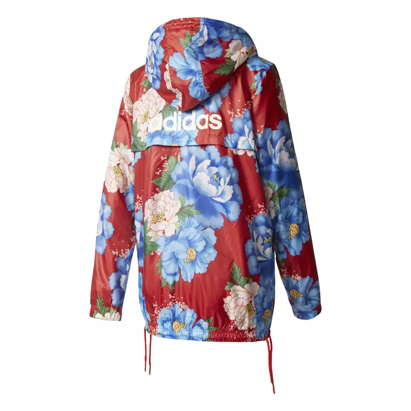 Designed in collaboration with the Brazilian company The FARM Company, this ultra-light women's windbreaker combines the best adidas design with a delicate floral print. It has adjustable laces on the hood and hem.