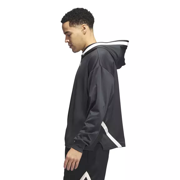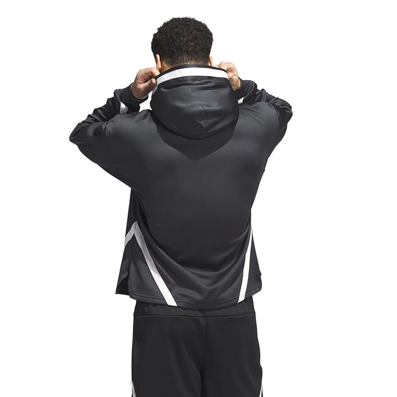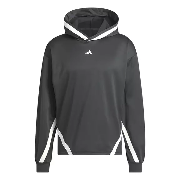 Go from the bus to the locker room in this adidas basketball sweatshirt. It's made of soft double-knit fabric with breathable AEROREADY technology that keeps your skin dry. Ribbed cuffs offer a more comfortable fit, and the hood with crossover detail reinforces its minimalist aesthetic. This product contains at least 70% recycled and renewable materials.