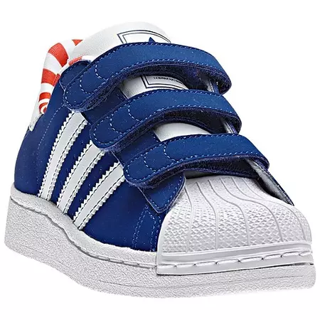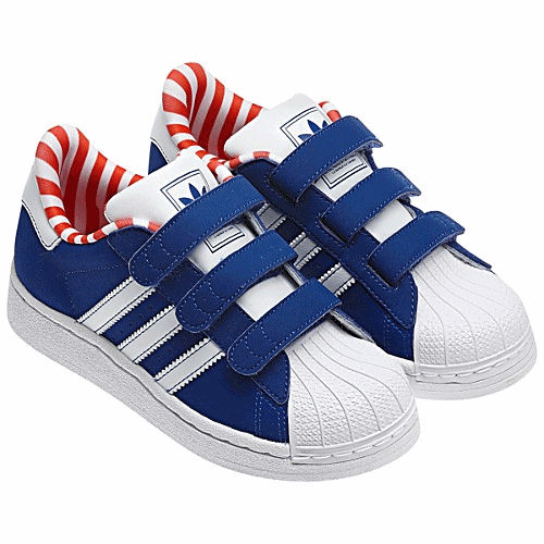 Como o sapato originais de basquete dos anos 70, mas em tamanhos menores. Os adidas Originals Superstar 2 CF C Sapatos Crianças com lendária silhueta nubuck de uma cor muito viva. Traga confortáveis ??fechos de velcro um respirável covers meia.