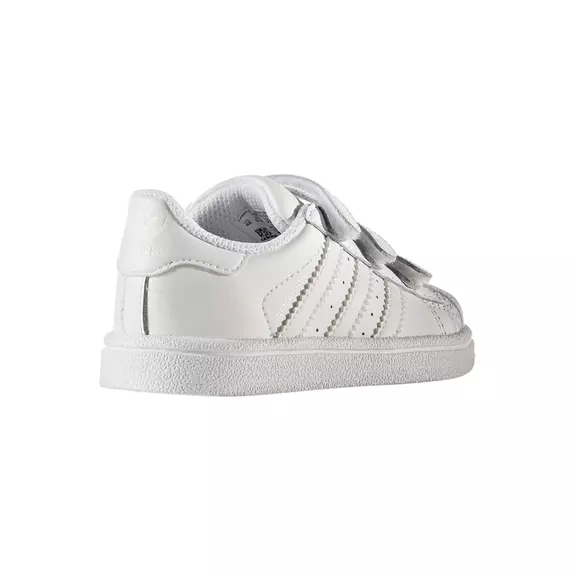 This shoe updates for the kids the legendary style of the adidas Superstar. It has a leather upper and a comfortable mesh lining, and has the classic rubber toe and 3 bands. Includes a closure with Velcro straps for easy insertion and removal.