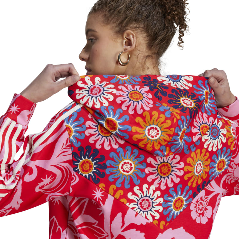 Ce n'est jamais une mauvaise idée d'avoir sous la main un sweat-shirt ample à porter par-dessus votre kit d'entraînement. Celui-ci d'adidas affiche un design saisissant qui lui donne un style retentissant. Sa coupe ample et ses épaules tombantes vous permettent de le porter confortablement par-dessus d'autres vêtements, tandis que la taille à cordon de serrage affine votre silhouette tout en vous protégeant du froid. Il a été créé en collaboration avec FARM Rio, une entreprise brésilienne qui transmet de bonnes vibrations avec ses imprimés colorés.