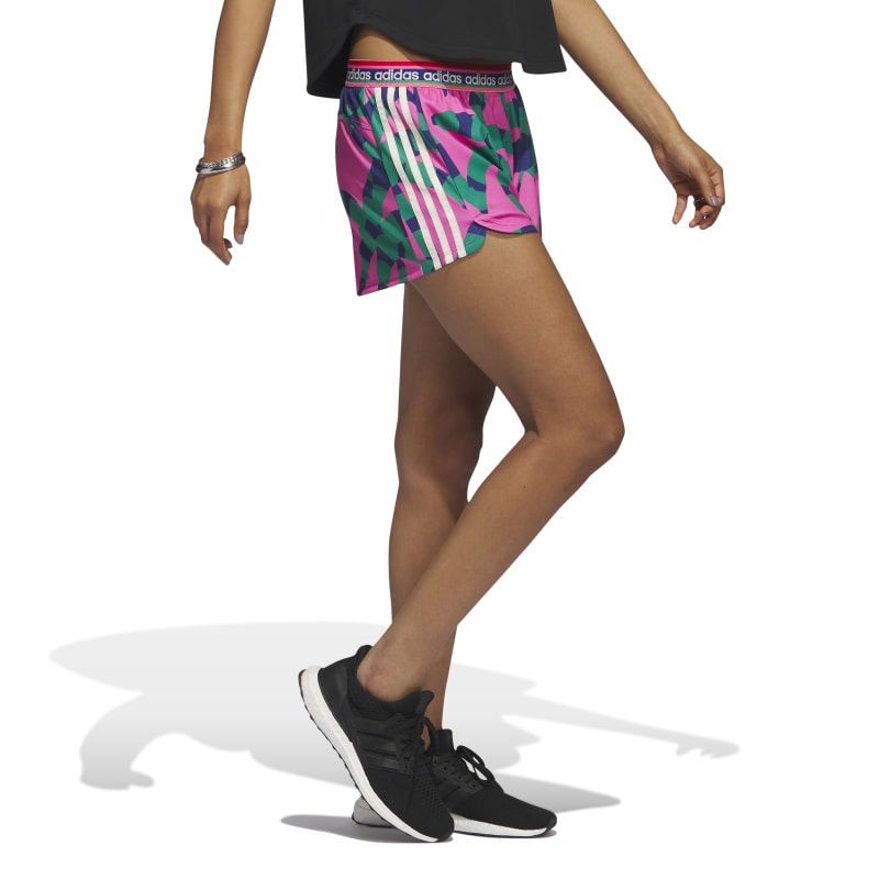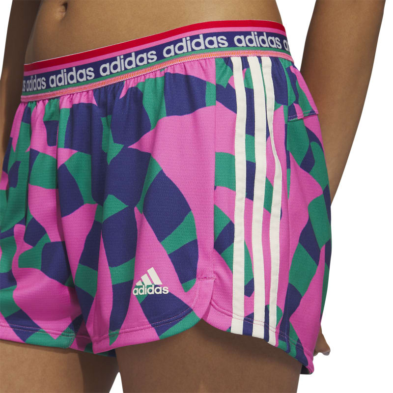 Train in full color with these Adidas shorts created in collaboration with the Brazilian fashion firm FARM Rio. Their soft fabric offers support and a secure fit so you can perform your squats and mountain climbers with complete peace of mind. AEROREADY breathable technology keeps skin dry when the temperature rises. It has an inside pocket at the waist for keys and side pockets for your mobile phone, gym card and money.