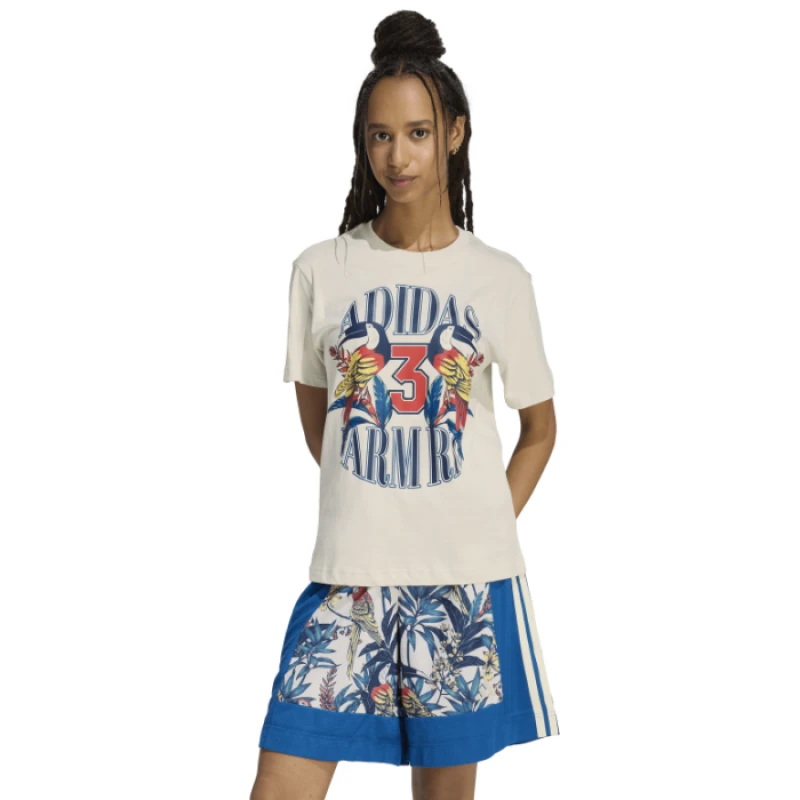 Take your wardrobe to new heights with the ADIDAS x FARM RIO GRAPHIC T-SHIRT. It's more than just fashion; it's a dynamic expression of individuality and global inspiration.