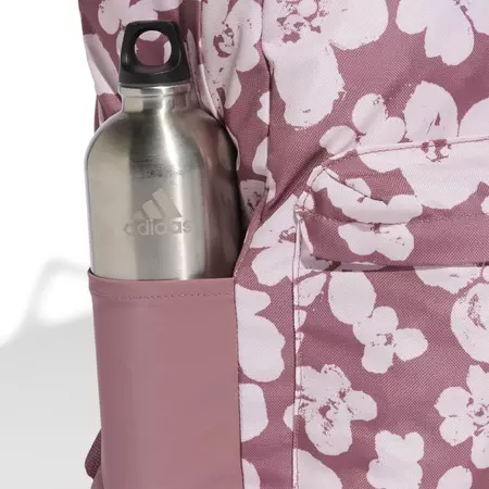 Keep your essentials in style with this adidas backpack for youngsters who are on the go. It features a spacious main compartment and an interior sleeve to keep all your essentials organised. The coated base and wear-resistant fabric combine to withstand the demands of everyday use. Side pockets and a front zip pocket give you easy access to your small valuables. A bold floral print reflects your cheerful, outgoing personality.
