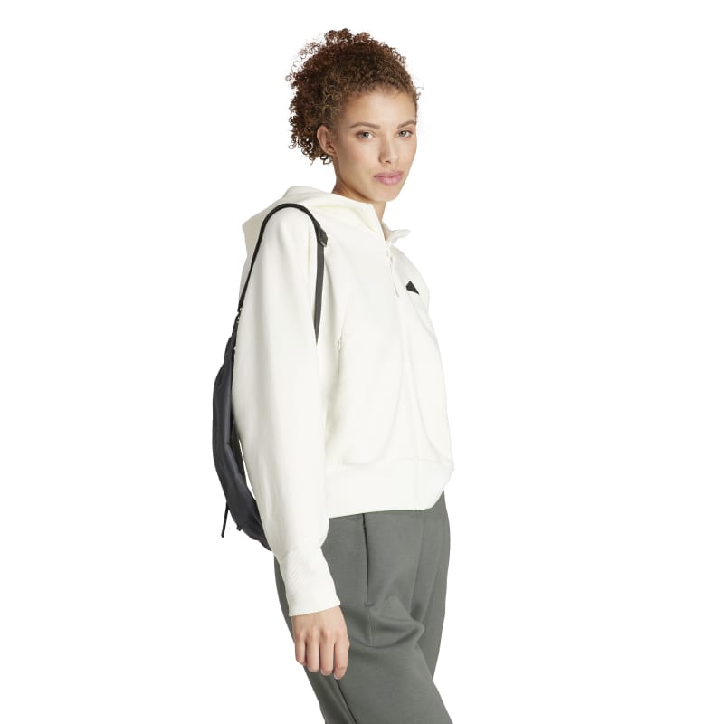 This Adidas hooded jacket features an ultra-elastic design that allows your movements and your mind to flow naturally. Its loose fit and soft, breathable AEROREADY fabric that keeps your skin dry give you the comfort you need to face any challenge. The hidden zipper pocket allows you to store your phone safely.