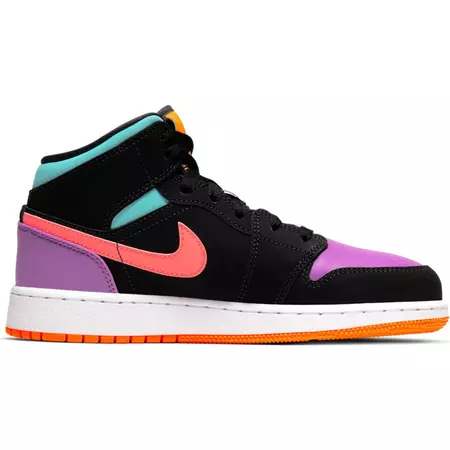 The Air Jordan 1 Mid (GS) shoes for boys elevate the style on the court and premium comfort to an iconic look. Its encapsulated Air-Sole unit cushions the game on the court and the padded ankle area offers support.
