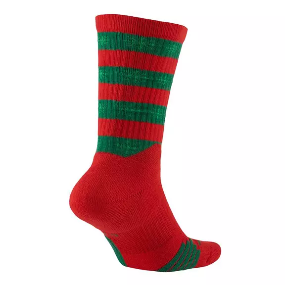 This season's Nike Elite Xmas Crew Socks are inspired by wrapping paper and ugly winter sweaters. Stretchy, sweat-wicking fabric combines with targeted cushioning for comfort and support.