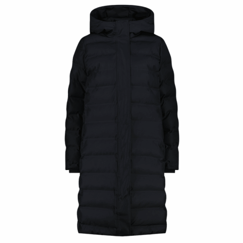 Long women's down jacket designed to offer high thermal protection and comfort on the harshest winter days.