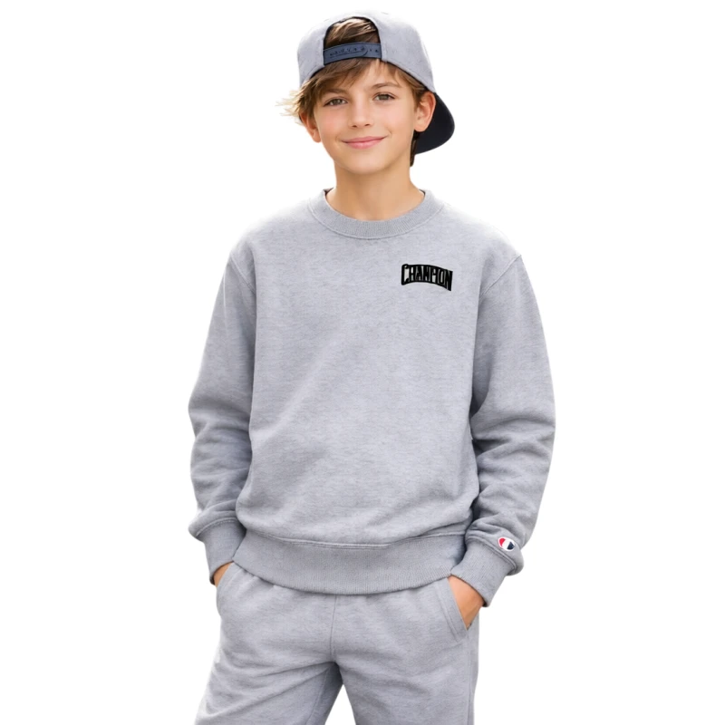 Welcome to the ultimate comfort and style in boys’ fashion with the Champion Boys’ Crewneck Sweatshirt with Puff Print "Grey". Crafted for the trendy young souls, this sweatshirt blurs the line between contemporary aesthetics and the timeless essence of Champion’s legacy.