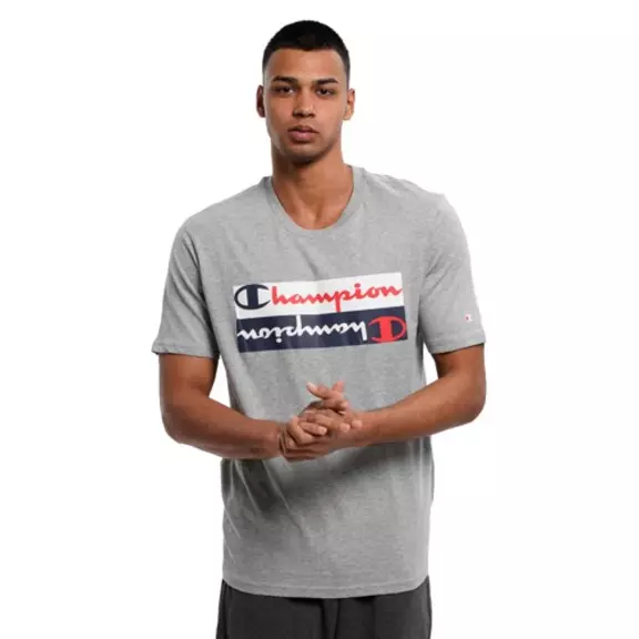 Champion Legacy Script Logo Crewneck Tee "Medium Grey"