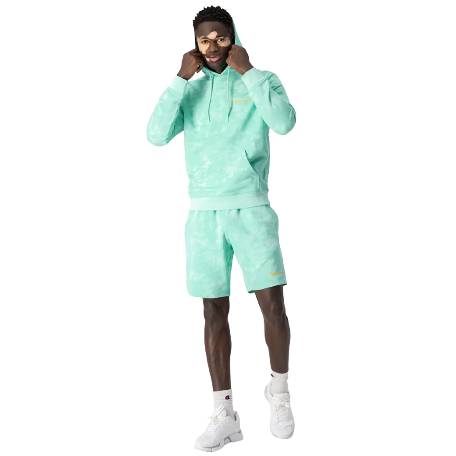 Champion Legacy Tie-Dye Small Script Logo Hoodie "Lime Green"