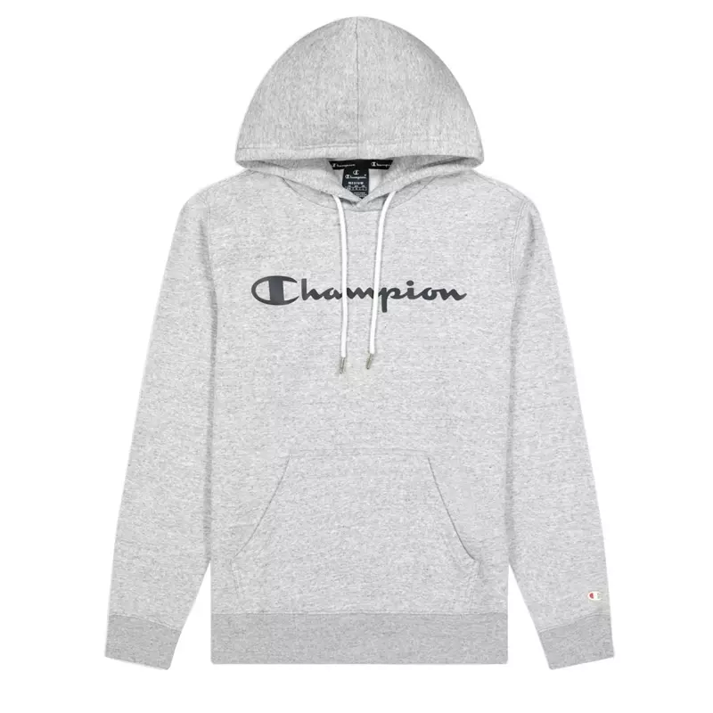 Champion Script Logo Print Cotton Terry Hoodie "Light Grey"