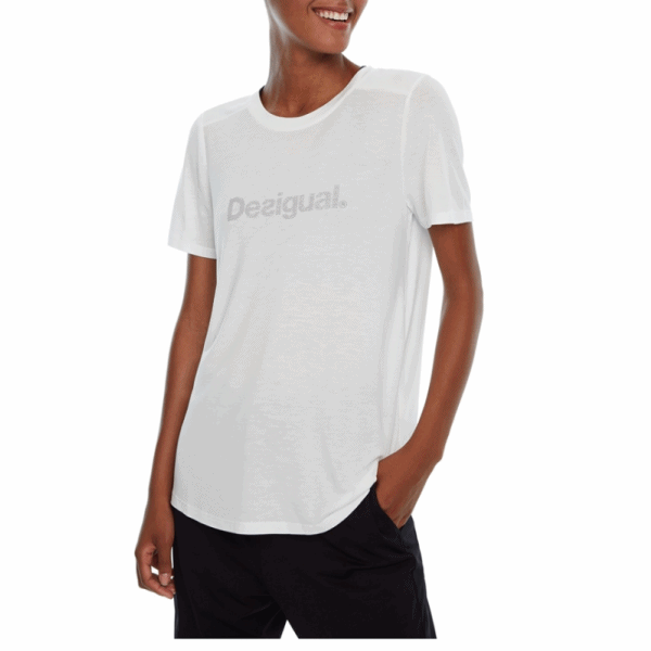 White sports shirt for women with Desigual detail on the chest. Soft fabric for maximum comfort when playing sports.