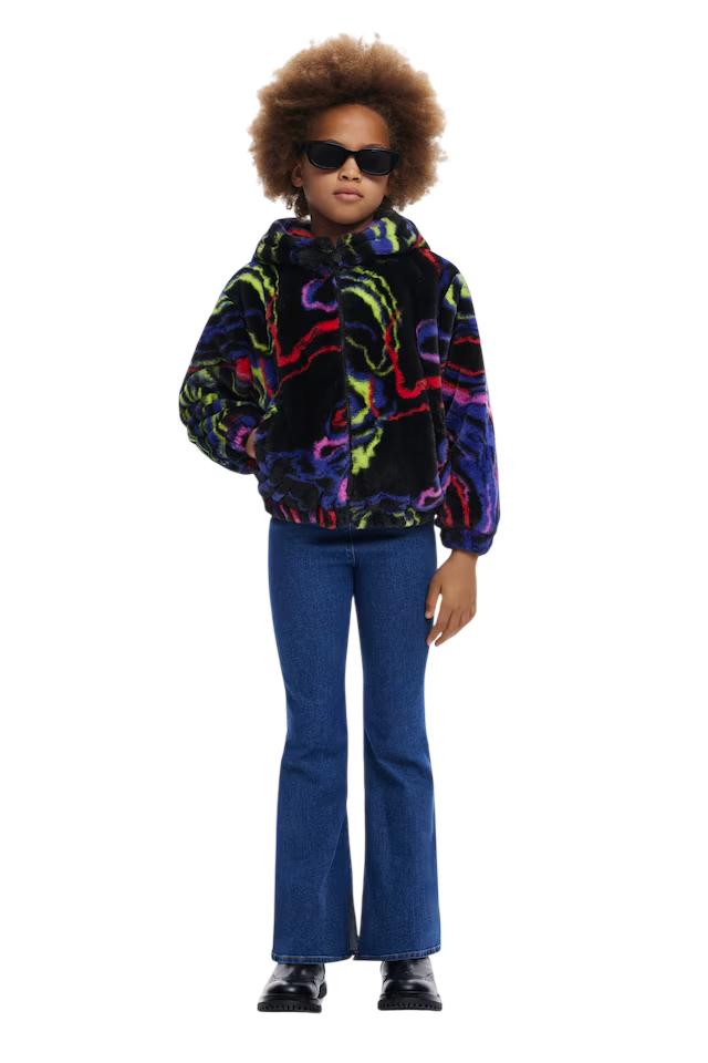 The Desigual Girls Rainbow Fur Jacket "Tutti Fruti" is more than just a piece of clothing; it's a statement of individuality and style. Treat your little one to a splash of color and comfort with this charming jacket.