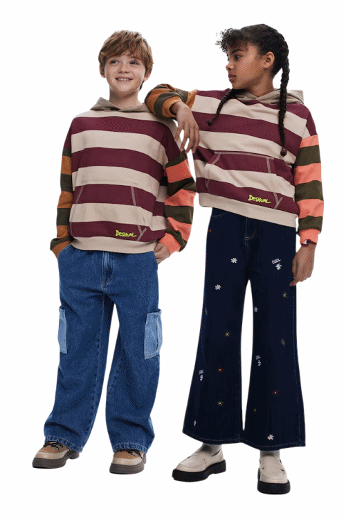 Wrap your child in the comfort and style of the Desigual Kids Sweatshirt with combined stripes "Caqui" - a modern essential in today's fashion world.
