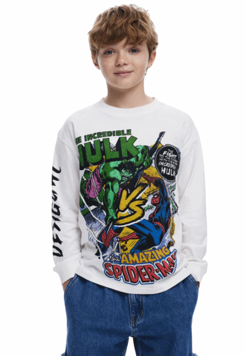 Add the Desigual Marvel™ Long Sleeve T-Shirt "White" to your collection for a modern and stylish nod to your favorite superheroes. The combination of comfort, style, and iconic graphics makes it a standout piece that you'll reach for time and time again.