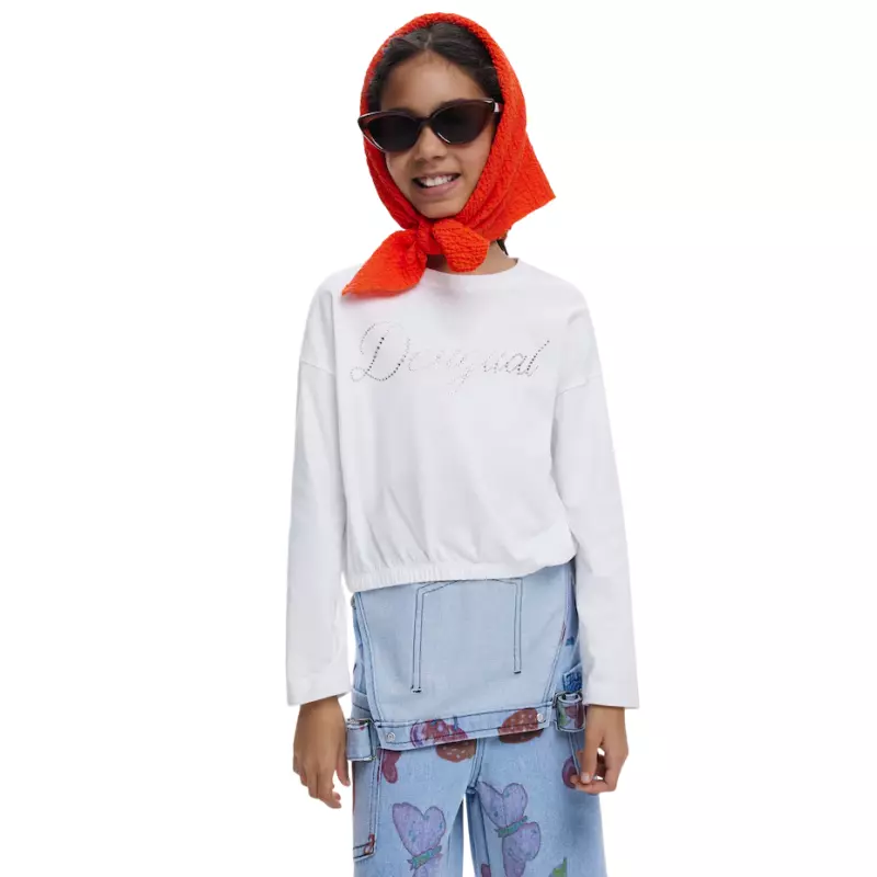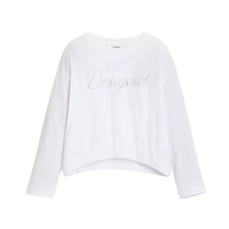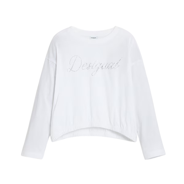 Discover the perfect fusion of elegance and casual style with the Desigual PLAIN T-SHIRT WITH RHINESTONE LOGO in striking "White". This t-shirt redefines everyday wear with a touch of sparkle that captures attention effortlessly.