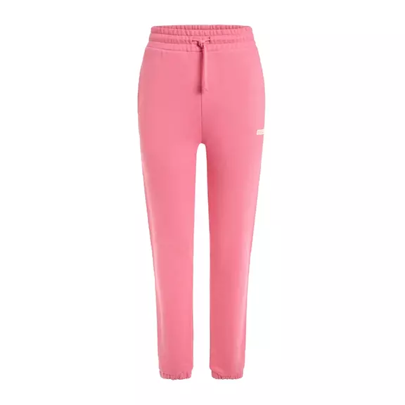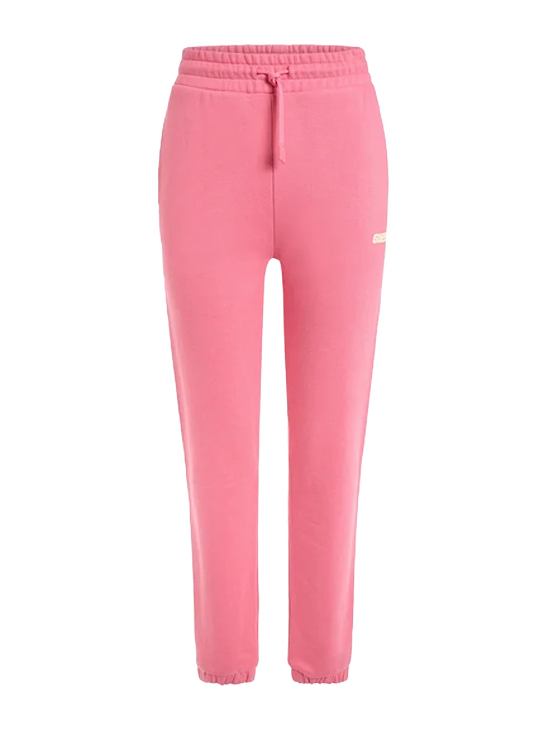 Jogger pants in a cotton blend, with an elasticated waistband, drawstring for a better fit, elasticated cuffs, side pockets and Guess branding on the thigh.