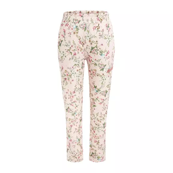 Cotton blend trousers with floral print and all-over logo.