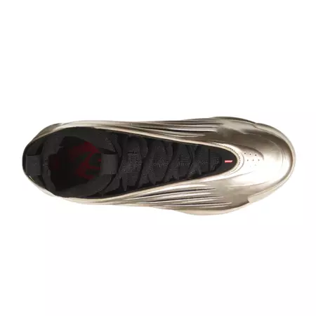 Cor champanhe metalizado: O topo do ténis é revestido numa sofisticada cor champanhe metalizado, que acrescenta um toque futurista e moderno.