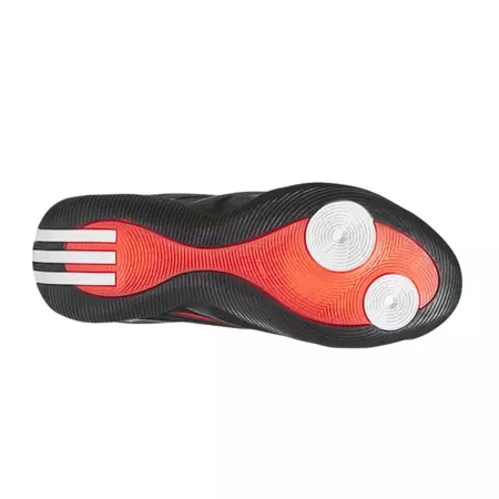 The upper of the adidas Harden Vol. 9 "Hellcat" stands out for its glossy black, mimicking the sleek bodywork of contemporary muscle cars. The contrast is achieved with the addition of red on the base, visible through the signature three adidas grooves. This design goes beyond aesthetics, incorporating details such as black carbon fiber heel counters, perfectly combining modernity and functionality. The tongues and laces also feature the same black tone, contributing to a uniform and sophisticated look.