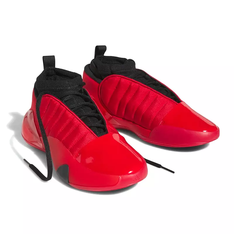 The three-time leading scorer's seventh James Harden Signature Three-Stripes basketball shoe features a new colorway of the mentioned model seemingly every night. The dominant vibrant red outfit of the Harden 7 has recently landed in the official images. Having last worn the pair in a mid-January road game against the Los Angeles Clippers, the bootie-like construction of the Harden Vol. 7 dawns a simplistic trio-tone arrangement, launching "Better Scarlet." as the contemporary main through the soft midfoot fabric and patent leather upper.