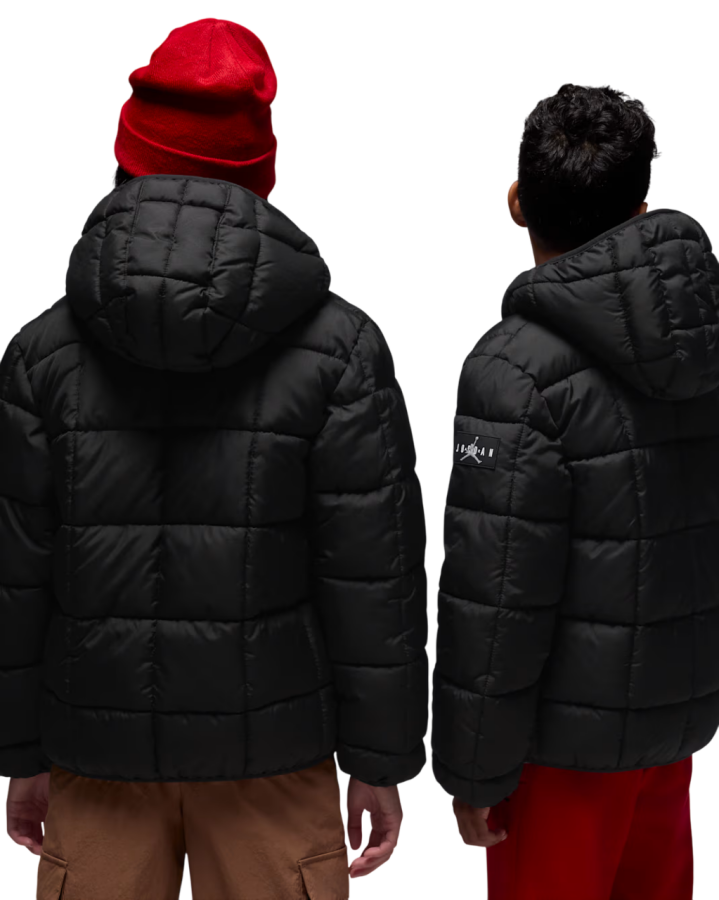 Welcome to the ultimate comfort and style with the Jordan Essential Midweight Kids Puffer Jacket in "Black". Designed for young fashion enthusiasts, this jacket offers a perfect blend of warmth and trend. Crafted with midweight materials, it ensures your child stays cozy without compromising on movement.