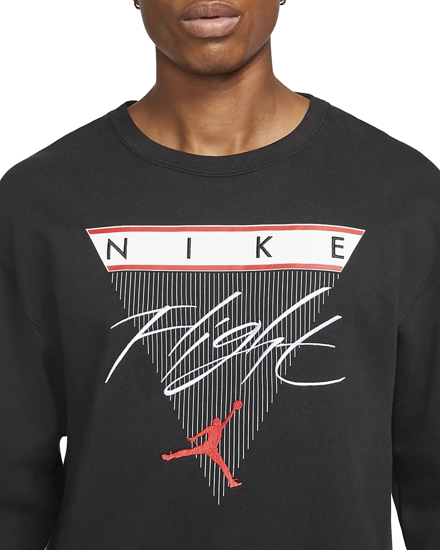 - The oversized Nike Flight print on the chest combines printed elements with embroidered lettering and the Jumpman design.