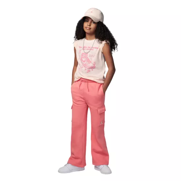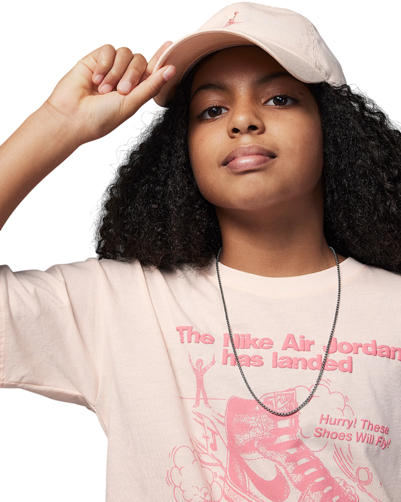 Discover the elegance and retro style with the Jordan Girls JDB AJ1 1985 Will Fly! graphic t-shirt in the captivating "Guava Ice" color. Specially designed for young fashion enthusiasts who love urban vibes and basketball legacy, this t-shirt captures the essence of the iconic year 1985, blended with a modern and vibrant touch.