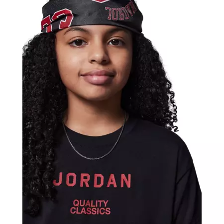 The Jordan Girld JDB W J Girlfriend Graphic Tee in "Black" is more than just a t-shirt; it's an expression of style and personality. Designed to provide comfort and a modern look, this garment is perfect for any occasion, whether it's a casual day out in the city or a night out.